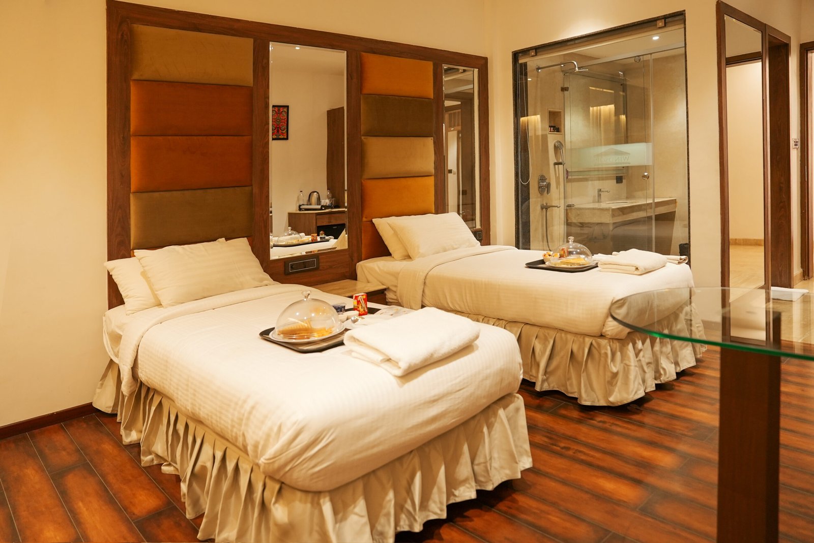 The Twin Suite is designed for guests who value comfort, functionality, and ease during their stay. Thoughtfully laid out with twin bedding and warm interiors, it offers a relaxed and convenient environment ideal for shared stays.